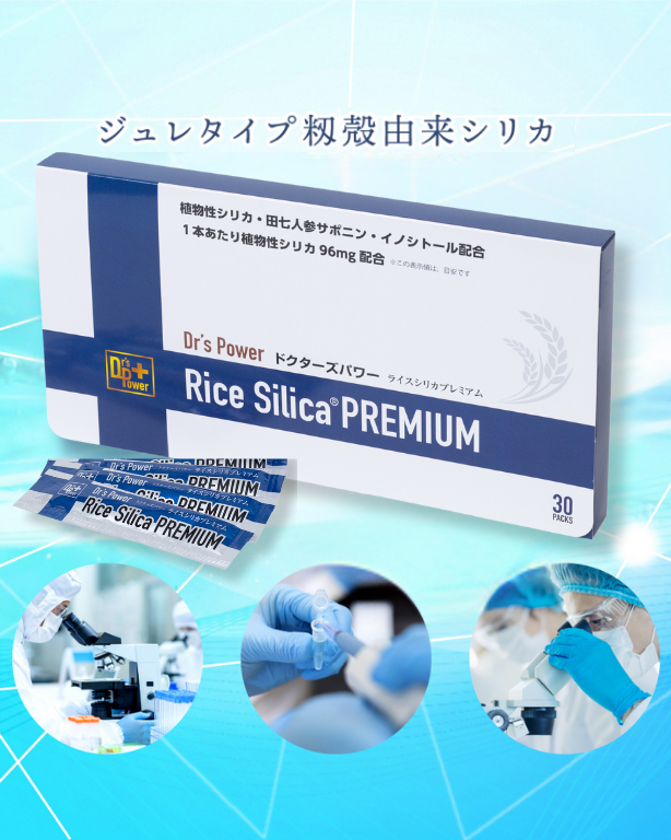 ドクターズ パワー ライスシリカ プレミアムに含まれる成分「シリカ、三七人参サポニン濃縮エキス末、イノシトール」が、人の代謝、免疫力、腸内環境にアプローチすることで、健康と美容に関する悩みを解決するのに期待ができます。